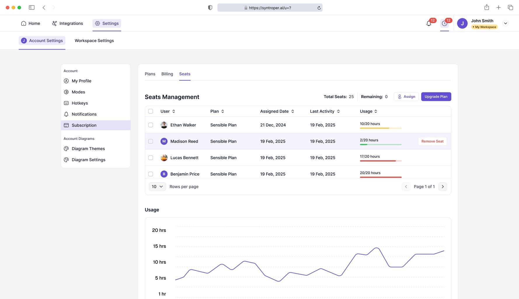Seats determine how many team members can access your workspace. Admins can assign, remove, or reallocate seats based on team needs. Additional seats are billed separately for each user.