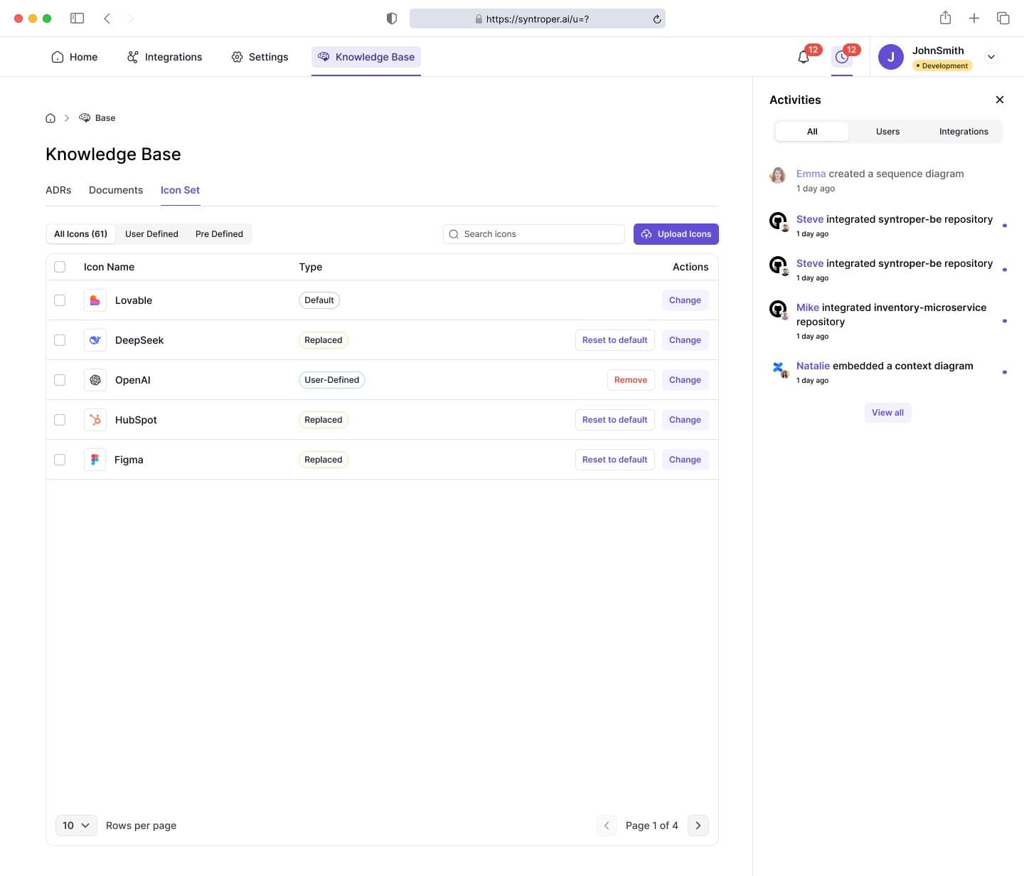 Syntroper supports default icon libraries and allows users to upload or replace custom icon sets.